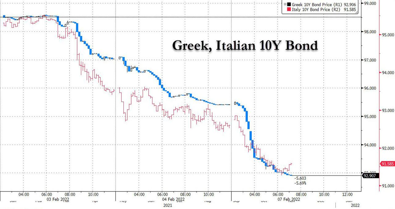 Bonds have plunged all over the world, sending yields higher.... What has forced the central-bank rethink is a wave of inflation.... This week, the U.S. is expected to report a 7.3% inflation rate for January, the highest since the early 1980s. Euro-area inflation just hit a record.Bloomberg via Yahoo!