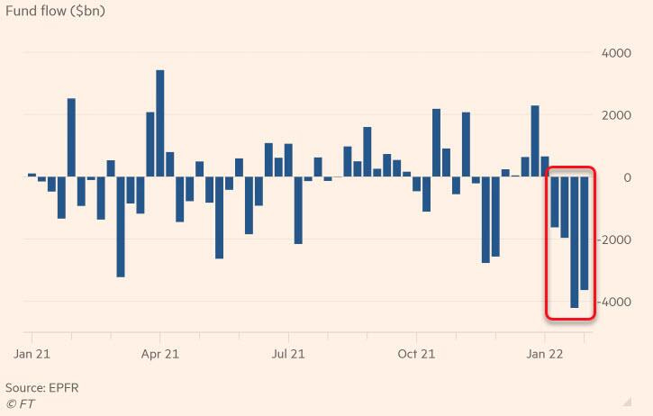 Yes it does. As you can see, the outflow from high-yield debt is already approaching the worst we have seen, which happened at the peak of the COVIDcrisis when markets were in a free-fall: