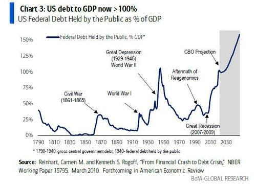 The US debt-to-GDP ratio now almost matches its worst peak after the Great Depression and WWII and is projected to rise significantly higher, making the financial side of the battle against the Great Recession and COVID already equal in scale financially with the overall economy to the battle against the Great Depression and WWII: