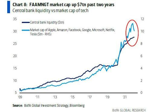 Tell me that won't be a race to the bottom! You can see the high-tech portion of the stock market, which has been the only thing floating the major indices above bear-market level, has some substantial catching down to do, even though it has already made a big move in its first leg down, even for those high-flying tech stocks, thanks in particular to last week's Faceplant. However, they are going to be chasing a falling balance of CB money when the central banks begin actual tightening. Even the Bank of England's latest tightening decision still has to be carried out in financial markets.