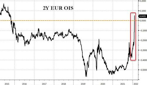Then, this past week, even Christine Lagarde, the uber-dove head of the European Central Bank, announced a more rapid shift out of easing, too, also pointing to inflation as the driver. She, too, set a critical March date if inflation does not ease by then. Her words launched some European interest rates to escape velocity so that they achieved positive yields for the first time in seven years:
