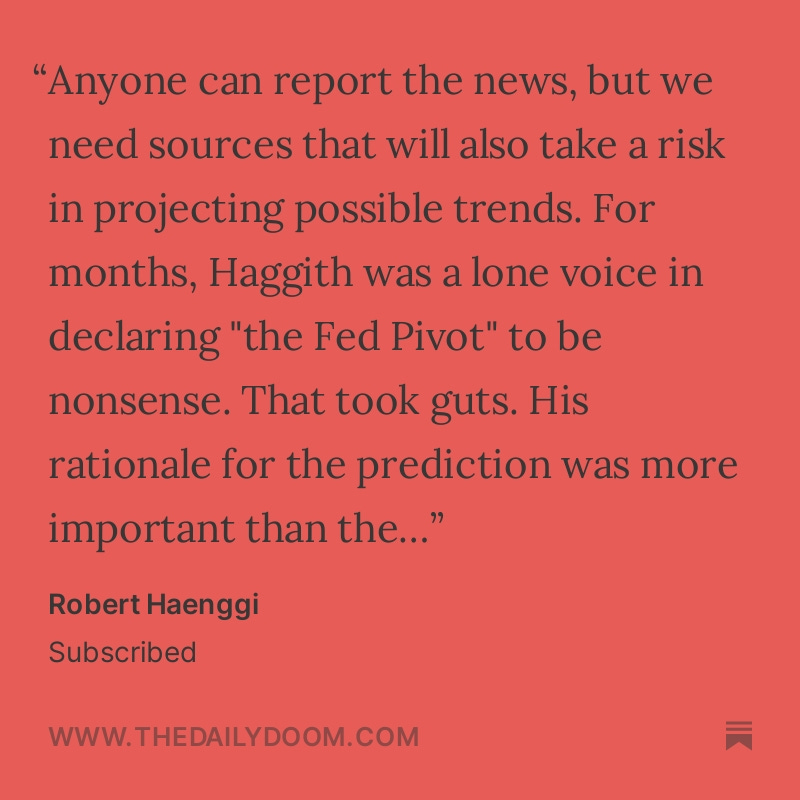 March cuts flew off the table. June is off the table. And maybe the whole year is off the table, and maybe even another hike is coming! It’s often a thankless and lonely job, but I’m staying with my convictions.