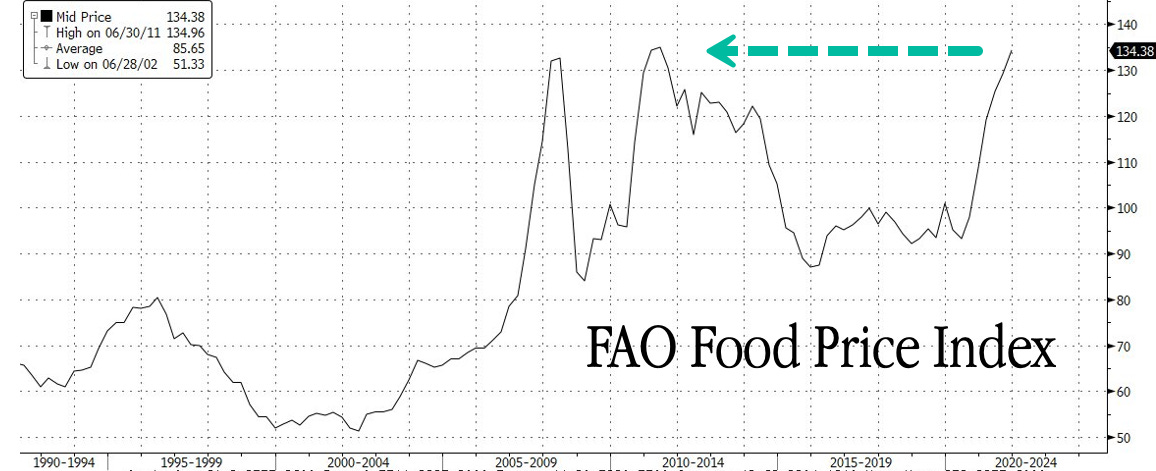 The world, as a whole, had already closed 2021 at a cost level for food matching the highest indexed food prices over the course of, at least, three decades: