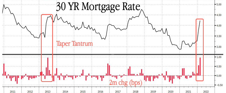 Worse than the "Taper Tantrum." That's a double whammy on your most expensive budget item if you bought a home in the past year, and it's slowly working it's way down the rent stream as well.