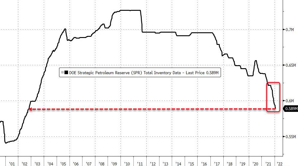 That, too, was pre-war. Of course, the wartime sanctions will make that worse and already are making it worse if you've stopped by a fuel pump lately, but it was building even before the war. Meanwhile, our national Strategic Petroleum Reserve is already at its lowest in twenty years, so don't expect any reprieve: