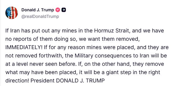 Even though greedy investors sucked up all of Trump’s swill, Iran clearly did not. If yesterday was just an attempt to manipulate markets, it worked. If it was an attempt at 4D chess to tease Iran into surrendering quickly, as he offered slippery hopes of a quick close, it predictably failed, given their response today: