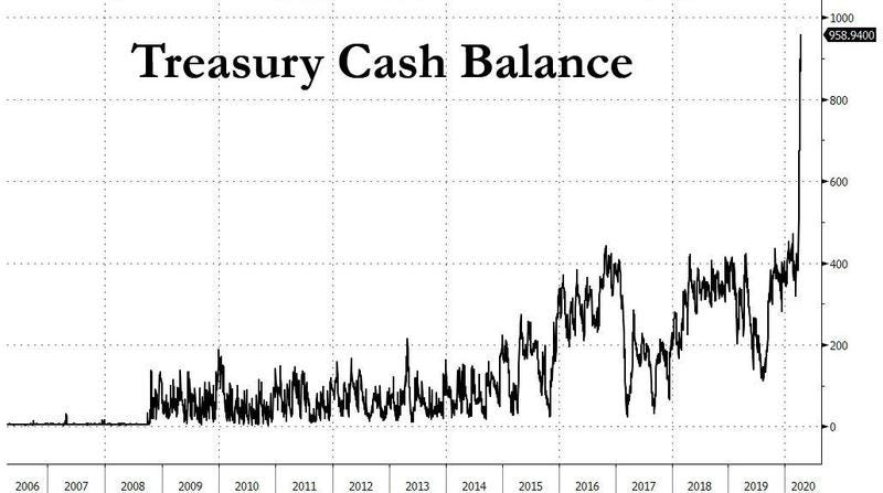 For perspective, here is what had to happen immediately to the treasury's balance sheet in order to have enough money in the government's bank account (at the Fed, which is the government's banker) for the first issuance of helicopter money to the general public: