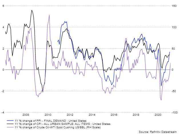 Inflation creates rising bond rates. That creates problems for the government in financing more debt, making the remainder of the stimulus path more fraught with difficulties, and it creates the mentioned competition for investor money between rising bond yields and stocks.