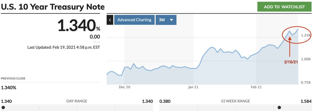 As I noted in an earlier Patron Post we are entering the first period since I began writing this blog years ago when I am actually concerned about inflation blowing up. In my last article about all the variables creating insanity in the housing market, I noted that inflation (or expectation of it) has started to drive up bond yields at a blistering pace, which in turn are starting to ignite mortgage rates. Prior to that, I had stated that, if the ten-year bond broke above 1.25%, it would start to create downward pressure on stocks by competing for investor money.