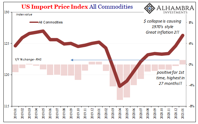 Another place where we are really seeing inflation due to the declining dollar (versus other currencies) and due to supply interruptions is in import prices: