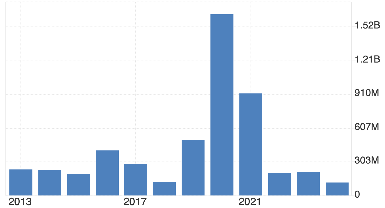 In 2020, the year after the big Phase One deal, China hyugely increased its pork purchases as promised to Trump; however, the number fell almost in half the next year under Biden and then dropped to smaller amounts in following years than it had purchased in each of the prior years. The numbers in the chart include frozen pork, so China stocked up on pork that could remain preserved then fed off of that in the following years under Biden.