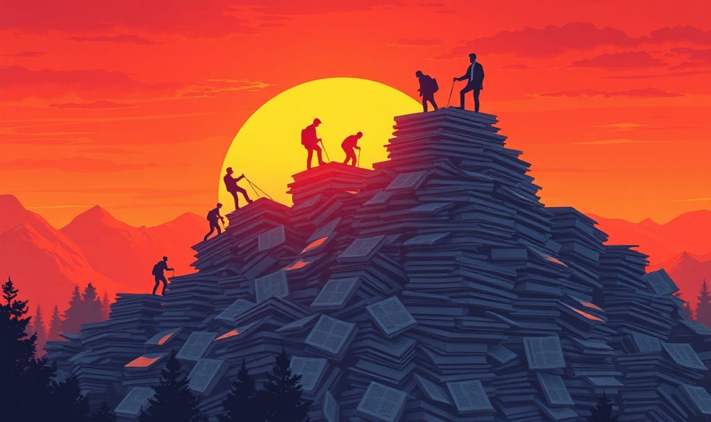 It was natural to assume—if the files were, indeed, sitting on her desk—we must be talking only a couple of boxes of files; yet, the number of files the government has and is still revealing was so great that Blondi, herself, later had to claim it was impossible for a huge team of highly skilled redactors to go through them in less than several months—a mountain of work they are still ploughing through, which would look more like this: