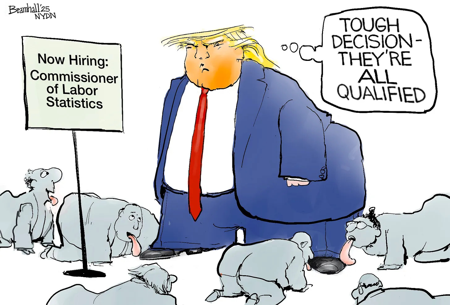 The problem I see is that her decline [in job numbers] was likely not large enough! Even after the Bureau of Lying Statistics puts out its regular deeply flawed numbers, and after they revise those numbers down in following months, they STILL often have had to make an even more MASSIVE downward revision of half-a-million-to-nearly-a-million jobs once a year to reconcile their hiring/firing seasonally-adjusted (i.e., politically manipulated) statistics to match known actual employment. So, even their early revised numbers are nearly always overstated. Moreover, their data sampling has become much thinner over recent post-Covid years and thinner still under DOGE as they have fewer people to collect the data.