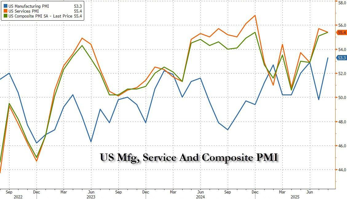One month after unexpectedly sliding into contraction for the first time in 2025, moments ago the S&P Manufaturing PMI even more unexpectedly soared from 49.8 to 53.3 … smashing expectations of another decline … and printing well above the highest economist forecast.
