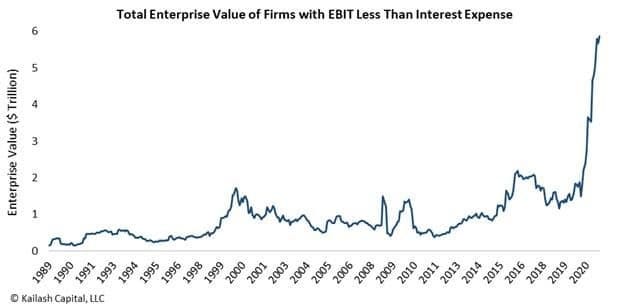 Next, take a look at the record number of zombie corporations -- meaning companies that are only serving on bond issuances, a position that become untenable when interest rises:
