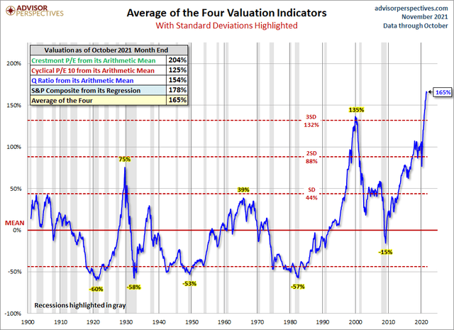 Here is a similar kind of measure that compiles four major valuation indicators compared to each one's mean: