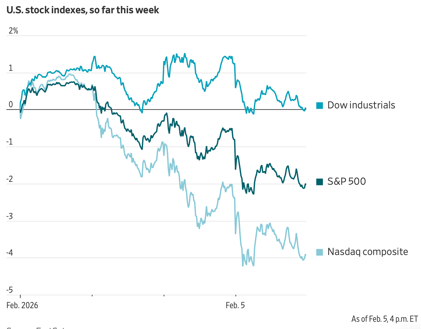 Stocks tumble for a third day, pushing the S&P 500 into the red for 2026 as investors exit tech, bitcoin