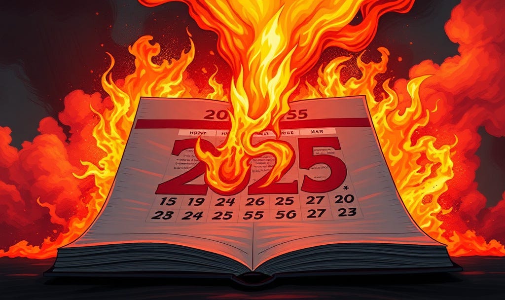 Like Labash, I predicted that 2024 would be the Year of Chaos, particularly starting up around the actual election week toward the end of that year. I won’t quite say, “I told you so” because, as I’ve noted at various points along the way in 2025, no chaos ensued at the end of 2024 over the election. (In fact, the Democrats practically took it in stride, compared to the chaos the Republicans threw up during the election week and beyond in 2020 and into 2021.)