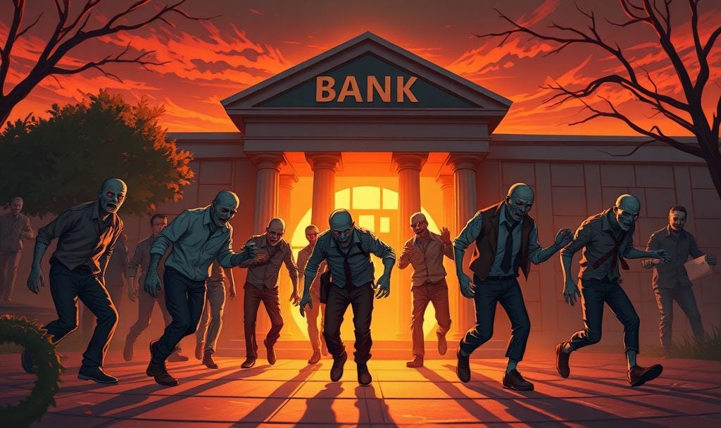 The zombie apocalypse finally started in small banks.