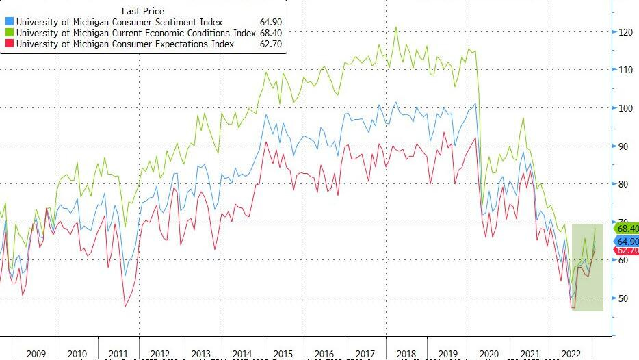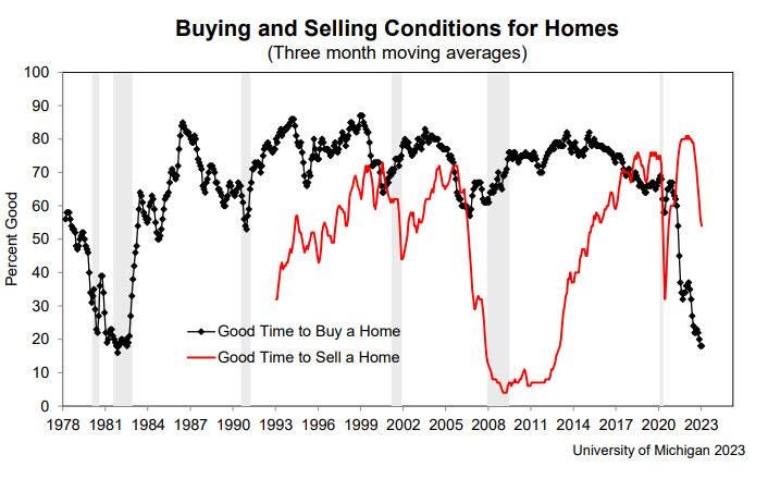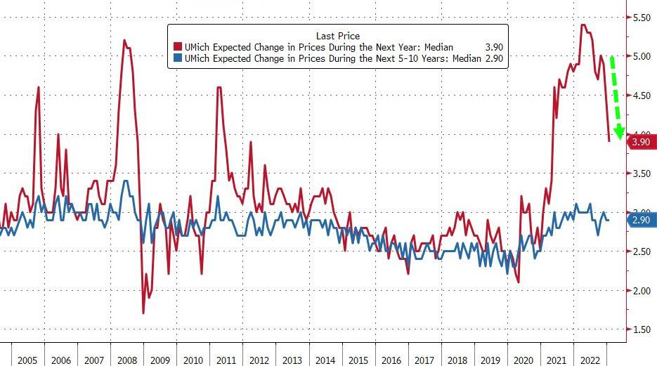 That is due likely to consumers believing the Fed is starting to make progress on inflation to where they are anticipating substantially less inflation in the year ahead: