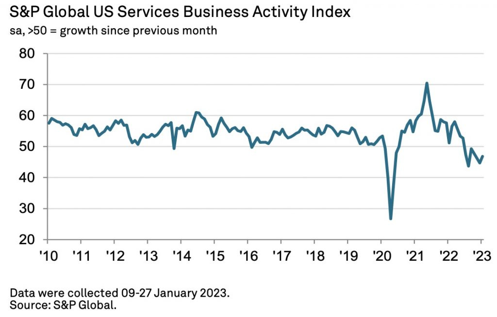 January data signalled a solid contraction in business activity across the US service sector at the start of 2023, according to the latest PMITM data. Although easing, the fall in output stemmed from further weak domestic and external demand conditions, as new business and new export orders declined. Firms continued to expand their workforce numbers despite another fall in backlogs of work, but the pace of employment growth slowed further amid reports of cost-cutting efforts....